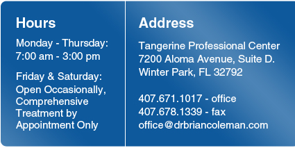 New patients, walk-ins, as well as same-day emergencies are always welcome. Dr. Brian Coleman has evening hours available on Tuesday and Wednesday. We also offer 24-hour emergency coverage.