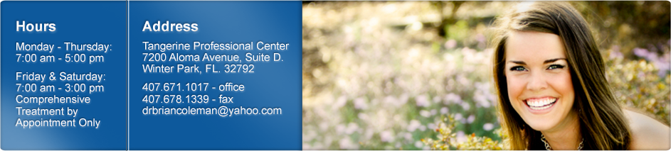 Our office is located in Winter Park, FL. We are a participating provider in nearly all PPO dental insurance companies, which means that we not only file your insurance as a courtesy, you will also receive the best treatment at the lowest possible fees.