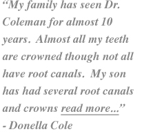 Our intent is to make sure that your initial visit with us is a positive one and that we provide you with the best that dentistry has to offer. We look forward to serving you now and in the years to come.